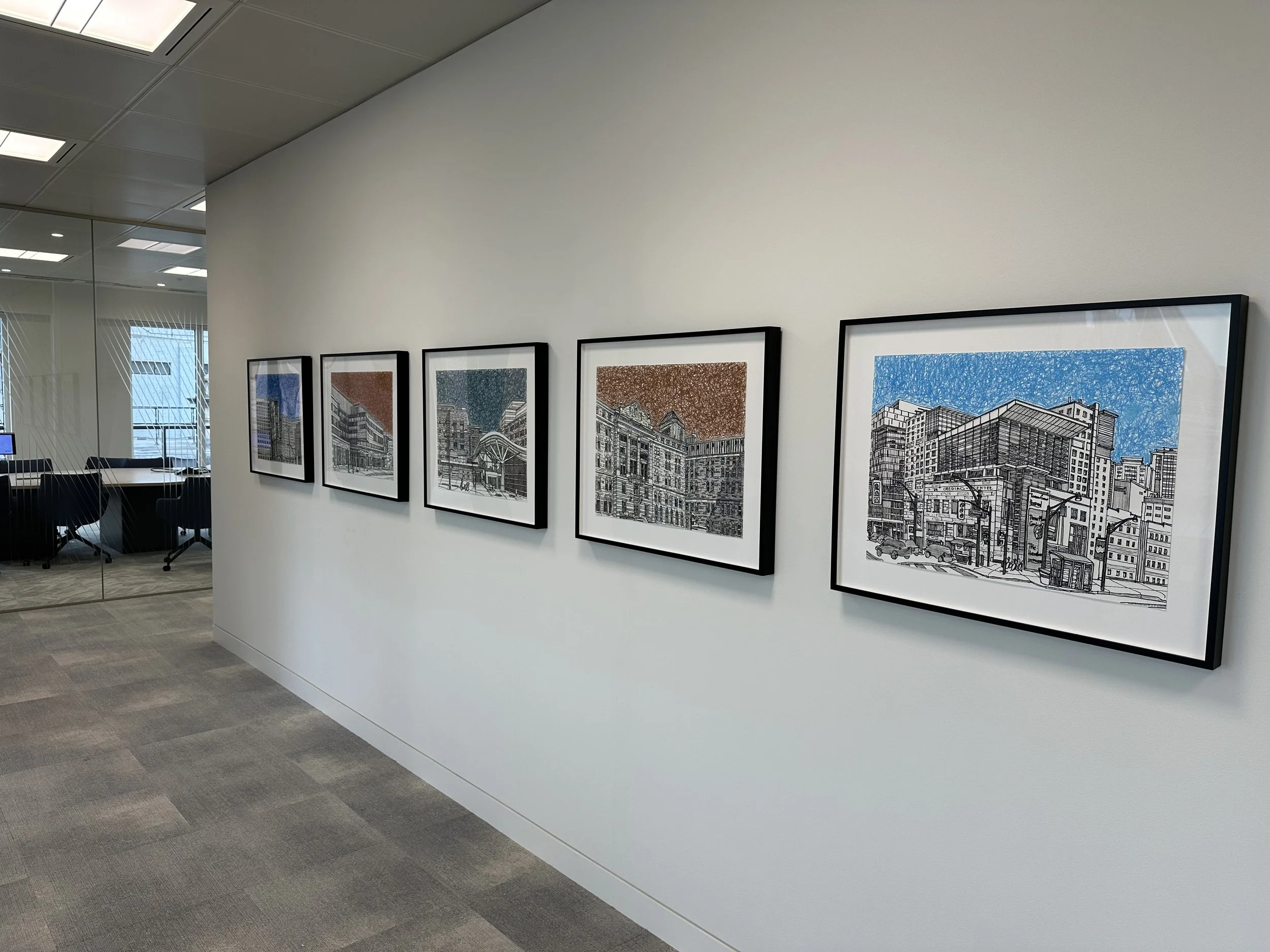 We carefully plan the placement of each piece to ensure it aligns with the space's functionality and aesthetics, whether it’s a striking feature wall in the lobby or curated pieces in meeting rooms and work areas.